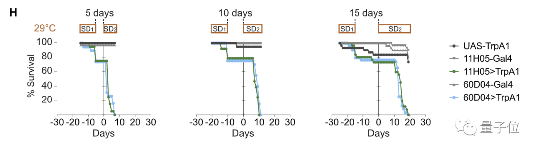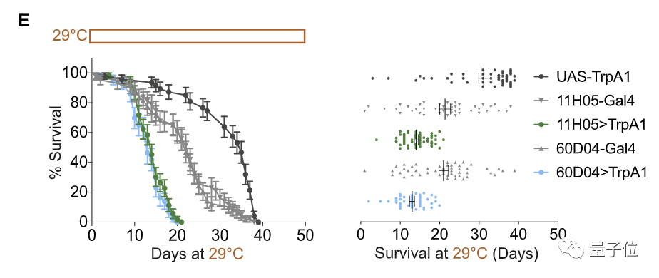 实验过程,这些果蝇被安置在29℃的环境中,这样热敏蛋白就能诱导神经元保持活跃,阻止果蝇入睡。