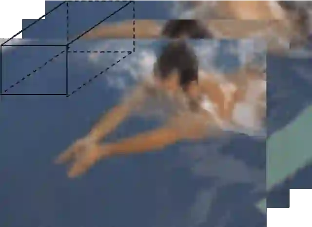 图 2: 上图为自由泳。下图为蛙泳。捕捉时间性运动是区分这两种看起来很相似的情况的关键。另外,还需要注意,相机角度在自由泳视频中段如何突然改变。