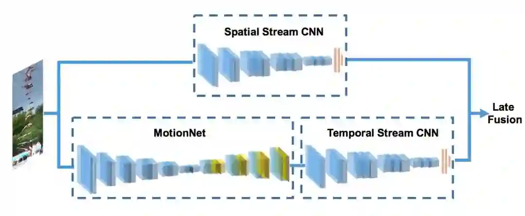 这个方法涉及预计算光流向量并分别存储它们。另外,针对两个流的训练是分离的,意味着端到端训练落地还有很长的一段路要走。