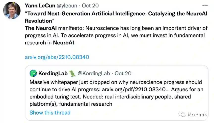 了Yoshua Bengio和Yann LeCun 两位图灵奖获得者在内的一批致力于机器学习与神经科学结合研究的科学家共同撰写的神经人工智能白皮书。