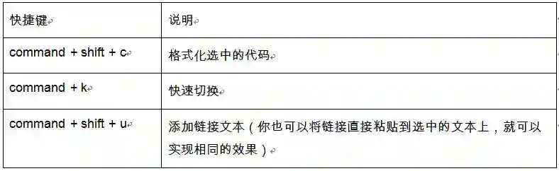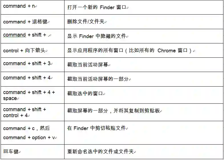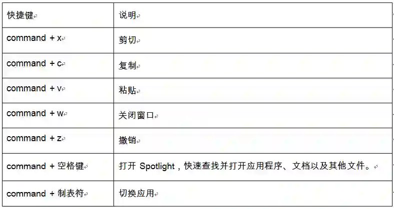 在习惯了这些差异后,我就开始为日常使用的应用程序寻找各种快捷方式。下面是我常用的一些快捷方式,完整的列表,请参见这里(https://support.apple.com/en-us/HT201236)。