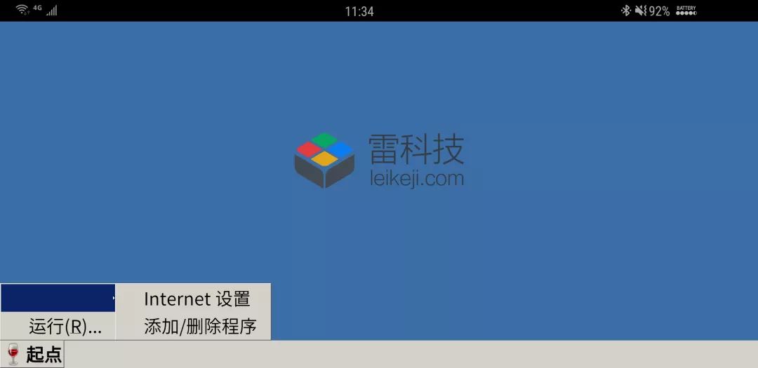 先说在 Note8 上的体验吧。主界面和 Win 95/98 类似,桌面空白。左下角的“起点”键类似于 PC 的“开始”键,点开只有运行、Internet 设置和添加/删除程序三个选项。