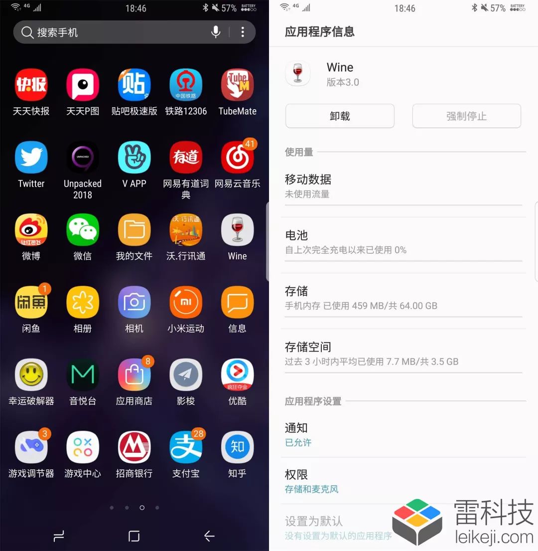 先将大小为 110MB 左右的 Wine 3.0 的 APK 安装到设备中,安装速度大概只需要十几秒钟的时间,还是挺快的。