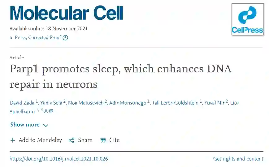 随后,在斑马鱼体内研究人员证实,通过遗传或药理学手段增加 PARP1 表达可以促进斑马鱼睡眠,并增强睡眠依耐性 DNA 损伤的修复。相反,抑制 PARP1 蛋白活性,不仅会阻止 DNA 损伤修复,即使当斑马鱼神经元 DNA 损伤超过阈值,斑马鱼也不会意识到疲倦进入睡眠状态。也就是说,PARP1 蛋白是大脑感知 DNA 损伤并驱动睡眠的关键因素。
