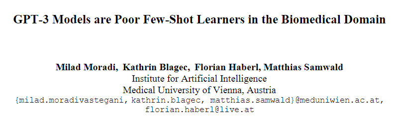 GPT-3在生物医学领域中的表现并不如小型架构但精细的模型