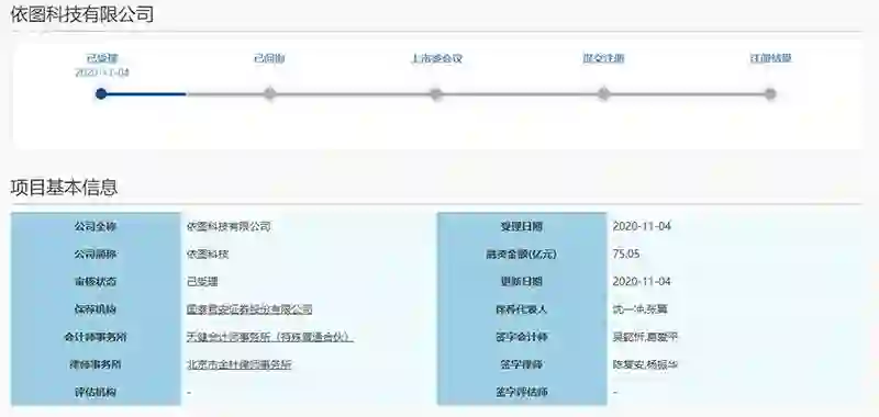 11月4日晚间,上交所官网显示,依图科技首次公开发行存托凭证并在科创板上市申请获受理。