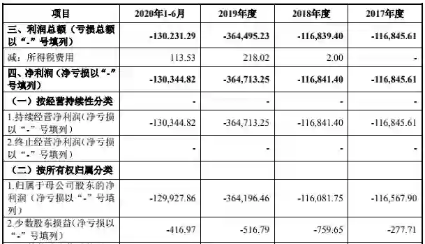 招股书显示,公司的归母净利润却一直未能转正,截至2020年6月末,公司累计未弥补亏损为72.2亿元。