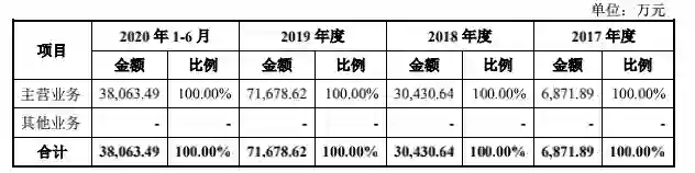 营业收入也全部来自主营业务收入。