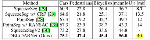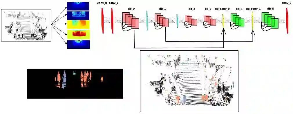 1、提出了一个卷积神经网络架构用于3D激光雷达的语义分割,分割类别为车,人和骑车的人;