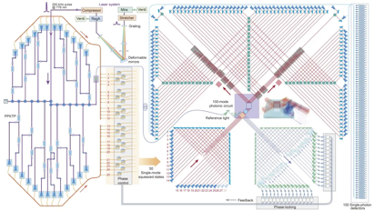 “九章”量子计算原型机光路系统原理图 (制图:陆朝阳、彭礼超)