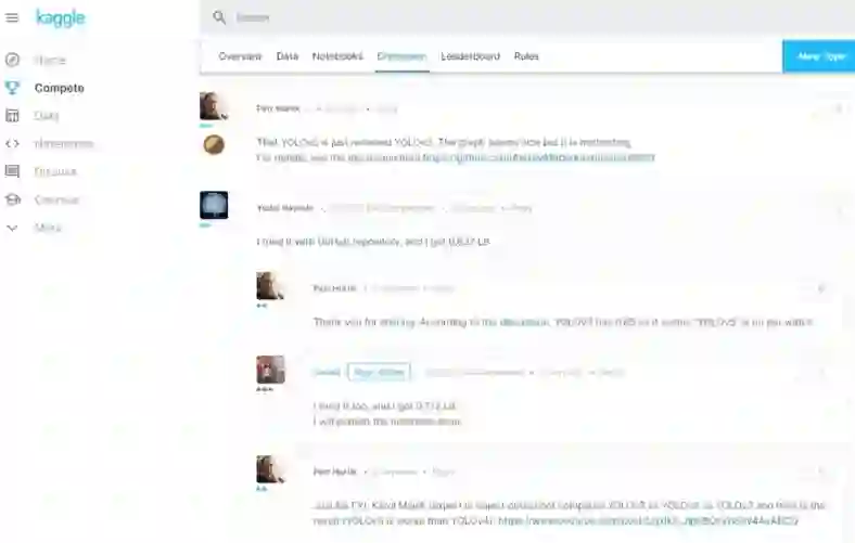 其次,为了确定 YOLOv5 是否够格,我们来看看相关社区对这个所谓的「下一代」模型的反应,包括他们的分析和评估。我们去谷歌搜一下 YOLOv5 的相关问题,然后找到 Kaggle 等信息来源。