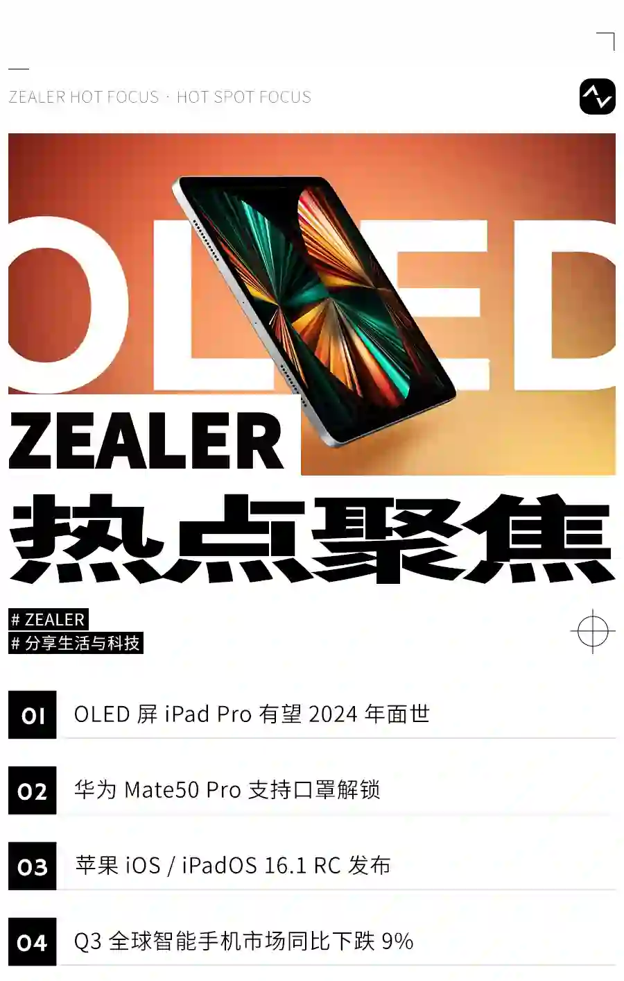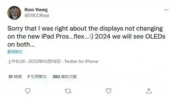 据屏幕分析师 Ross Young 最新爆料,苹果有望在 2024 年上半年推出装备 OLED 面板的 11/12.9 英寸 iPad Pro 型号。