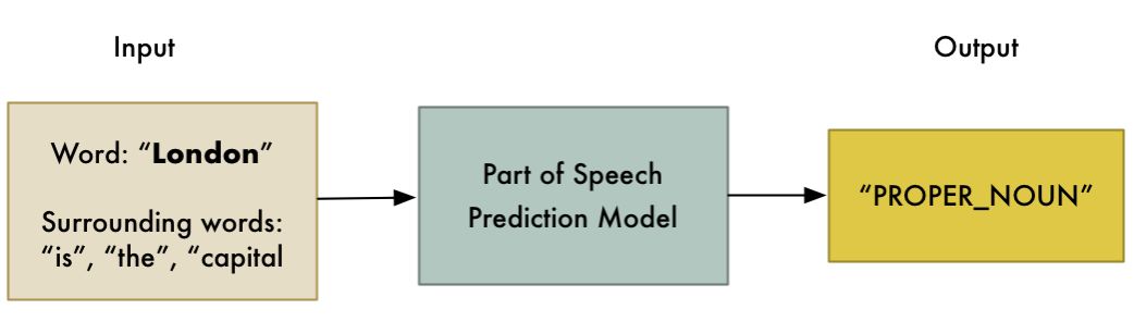 我们可以把每个单词(和它周围的一些额外的单词用于上下文)输入预先训练的词性分类模型: