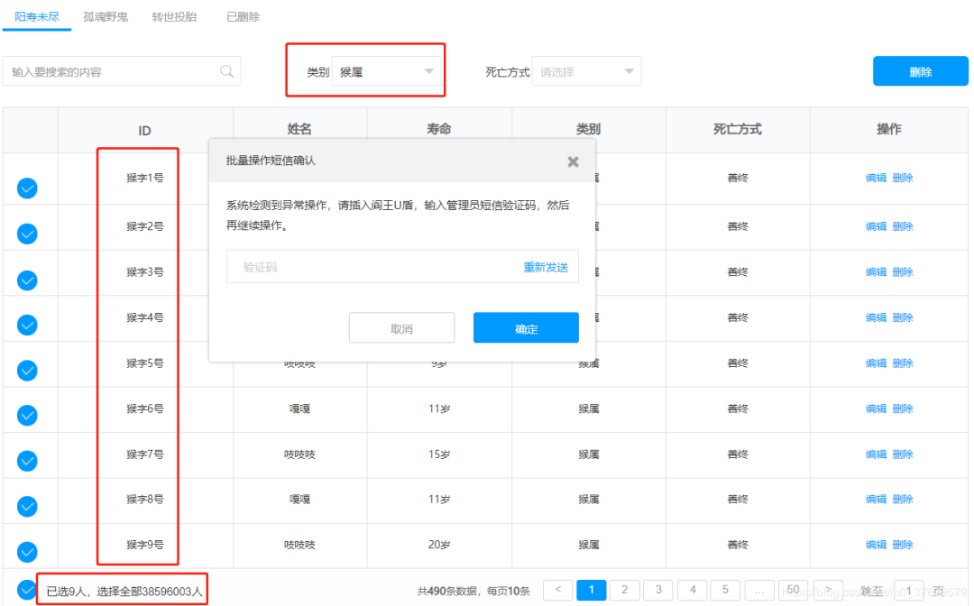 批量删除有风险,所以需要插入U盾,猴子应该是直接拿了阎王的,获取验证码,批量删除猴子猴孙,为你点赞!