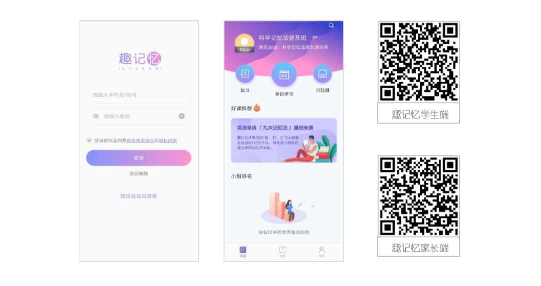 「趣记忆」成立于2018年,总部位于湖南长沙,产品研发中心设立在北京中关村,希望为小学、初中、高中的学生提供“移动互联网+科学记忆法” 的学习模式,帮助学生轻松记忆英语单词和古诗词。