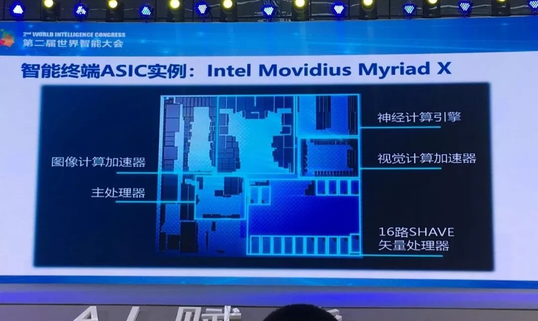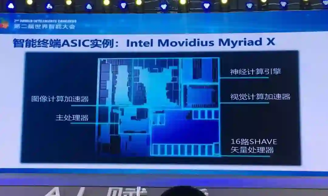 还有Intel的Movidius Myriad X芯片,它右上角的一个神经计算引擎,也是一个专门为了做深度神经网络,但它也是固定的一些比特数,做加速用的部件,同时还有16路的SHAVE,可以很灵活的去处理其他的一些视觉加速。