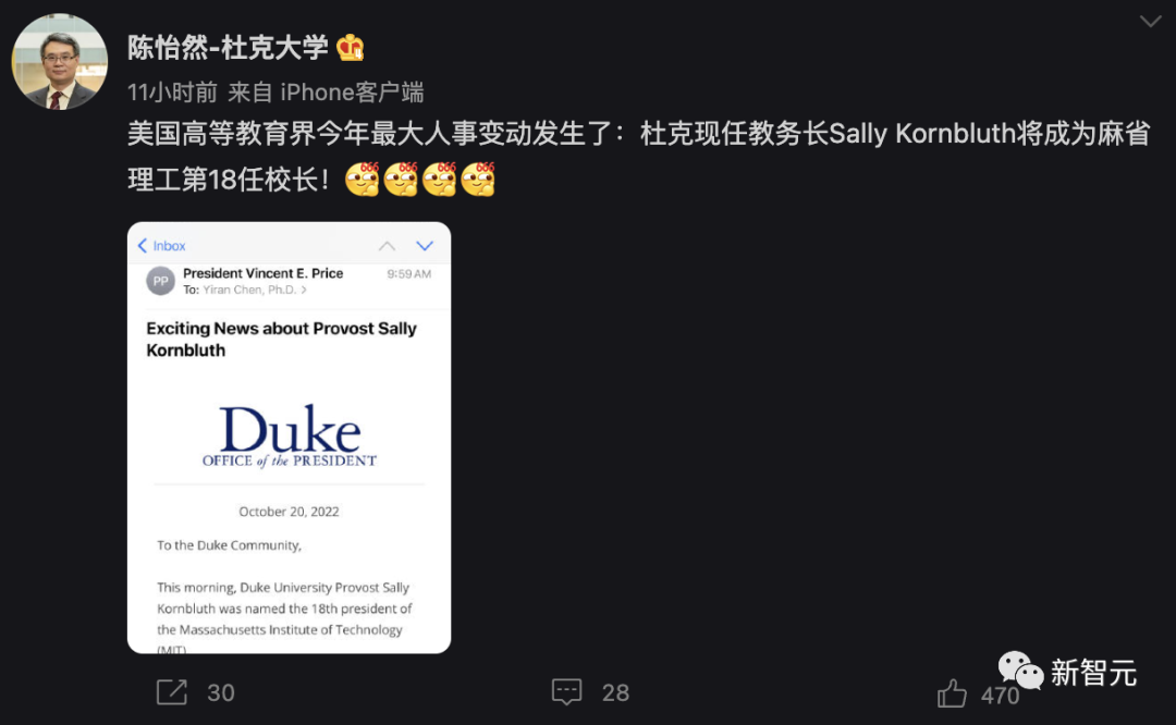 而在今年,当了8年杜克教务长后,Kornbluth荣升MIT校长。