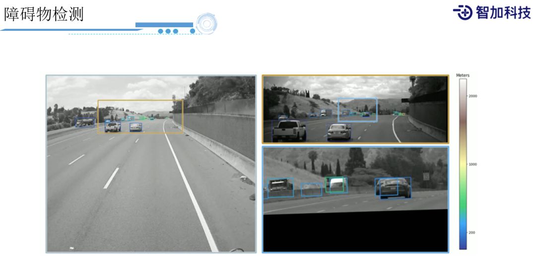 我们再来看下Object Detection,对于障碍物而言,它的pattern不像车道线那样有规律,而且非常的离散,所以单纯的用分割网络是很难解决的。所以我们还会用到现在业界比较成熟的Object Detection的方法。