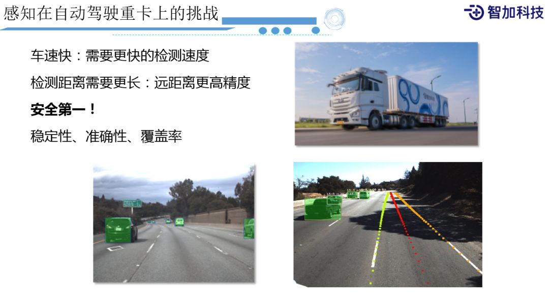 大家好,很高兴今天给大家分享智加科技在感知技术上的实践和探索,在前面的环节,江博士已经介绍了很多深度学习在智加自动驾驶中的很多应用,这里我特地给大家多介绍一些感知方面,深度学习(还包括其它的一些传统方法)能够落地的一些方法和实践,尤其是我们在实践过程中遇到的一些技术问题和一些有意思的case,以及我们量产过程中遇到的一些问题,都会跟大家一起做一些分享,大家也可以留言跟我们讨论。