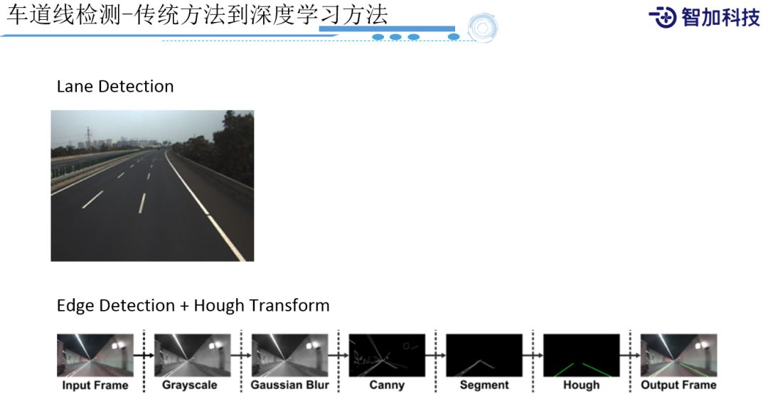 不同的光线;不同的车道线形状;车道线本身不同程度的破损;或者是它的一些噪音,尤其是一些障碍物的遮挡,如大量车辆遮挡的情况下,用传统方法很快就会遇到瓶颈,调参数是调不过来的。