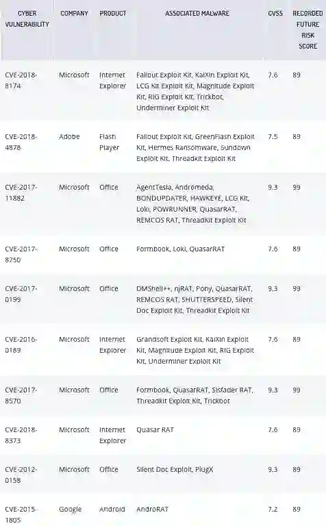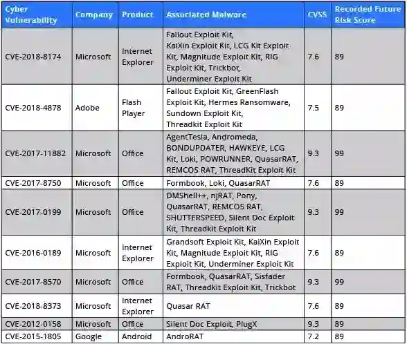 该名单由 Recorded Future 分析了大量资料后制作。在参考了深网(deep web)论坛帖子、代码仓库和暗网等资料之后,Recorded Future 将漏洞利用工具包、网络钓鱼和远程访问木马(RAT)进行的网络攻击列入了该名单的范围。