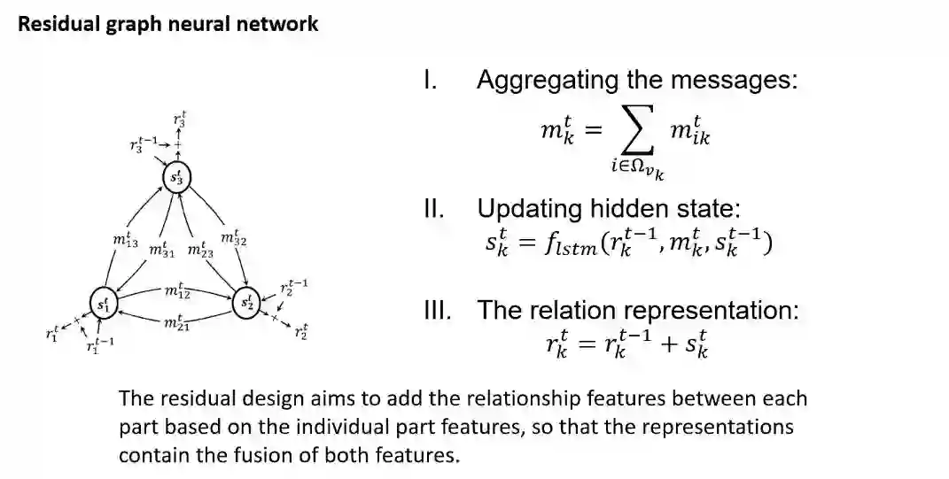 在空间上,我们将人体结构划分为多个身体部位,如:头、手臂,躯干、腿等结构,并提出利用一个残差图神经网络(residual graph neural network(RGNN))去建模各个身体部位之间的人体结构特征。