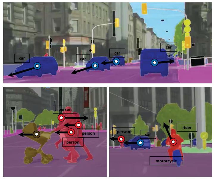 图1. 我们的模型可以学习语义级别的场景中的动态信息,从而可以通过若干过去的图像帧来预测未被观测到的将来的图像帧的语义分割结果。