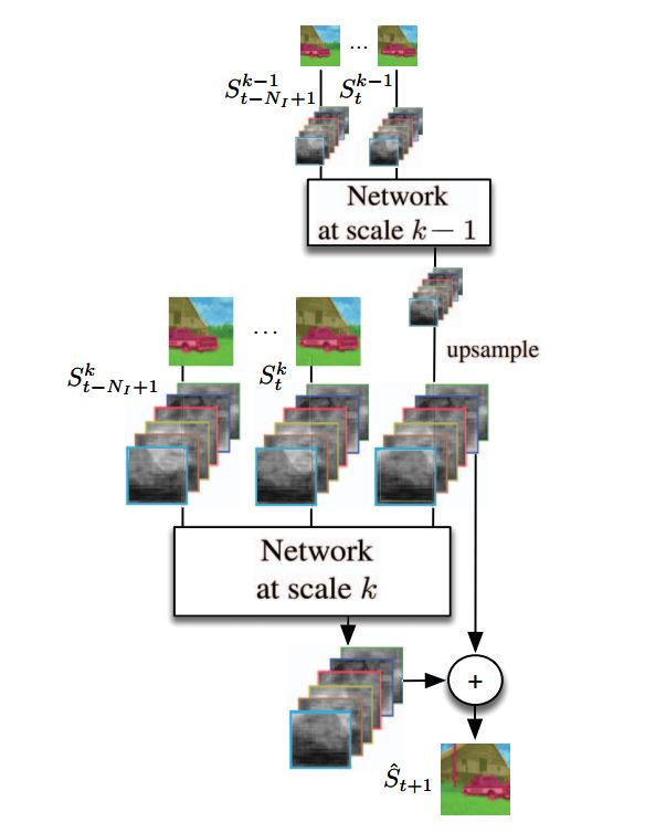 图2. S2S模型的多尺度结构,该模型可以在给定N_I个视频帧后预测出下一时刻视频帧的语义分割结果。
