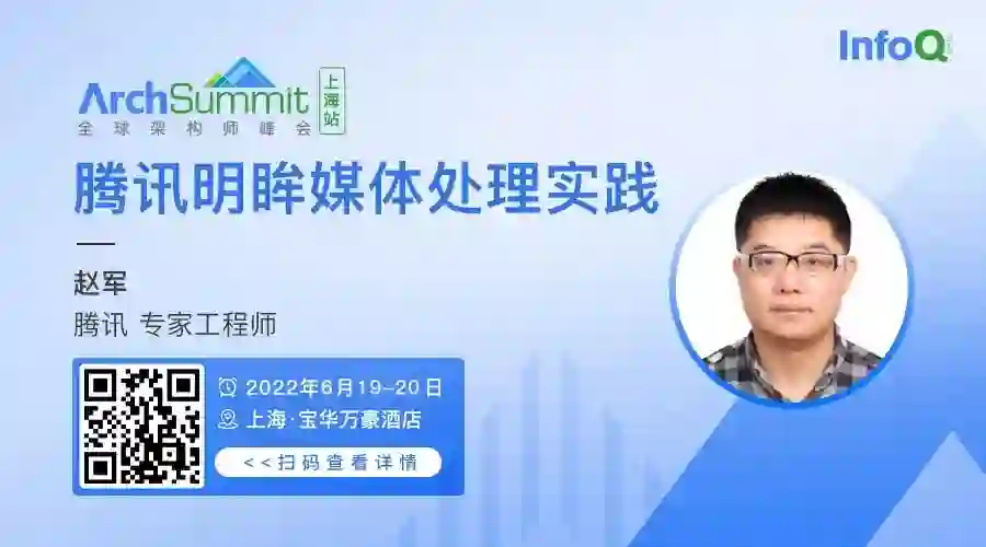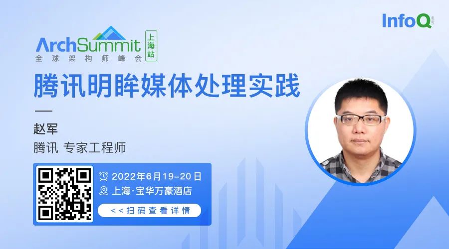 在 6 月 19-20 日,ArchSummit 全球架构师峰会即将落地上海,赵军老师也会到现场分享,在赵军的分享中,你可以了解到腾讯明眸媒体处理架构。另外在此峰会上,我们一共设置了十五个专题,其中包含大数据与人工智能、中间件开发实战、移动端开发实践、微服务架构设计等等,详细专题内容可通过下方 Banner 扫码了解,期待和你一起现场交流。