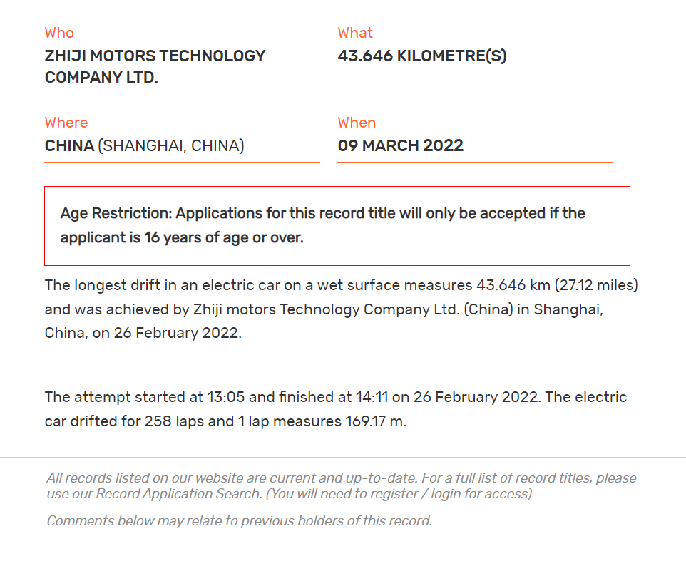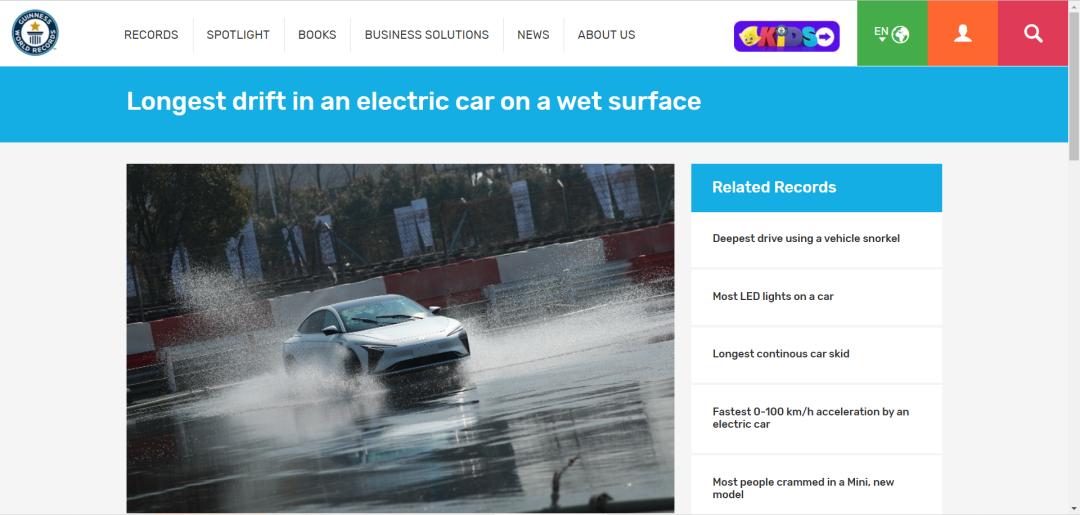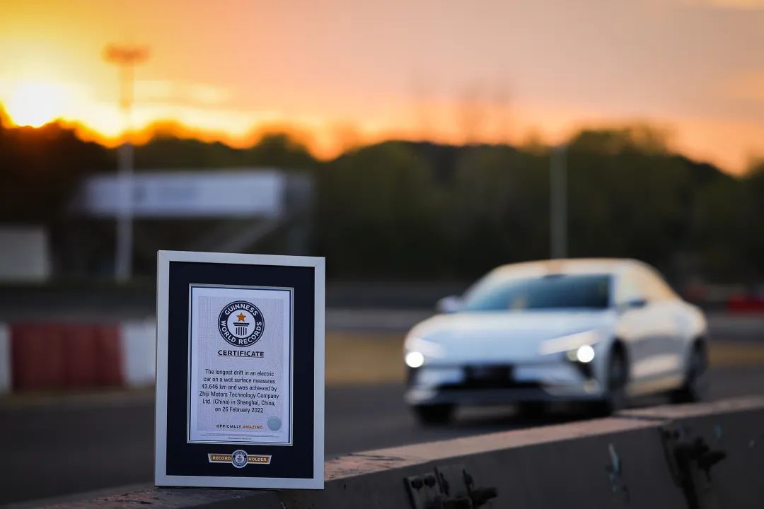 这组数据一款被称为智己 L7 的轿车创造,这组数据打破了“电动车在湿滑路面最长漂移距离”的吉尼斯世界纪录,这个纪录的上一个保持者是保时捷 Taycan。之前在同一条赛道上,智己还刷出过 1 分 12 秒 94 的圈速成绩。