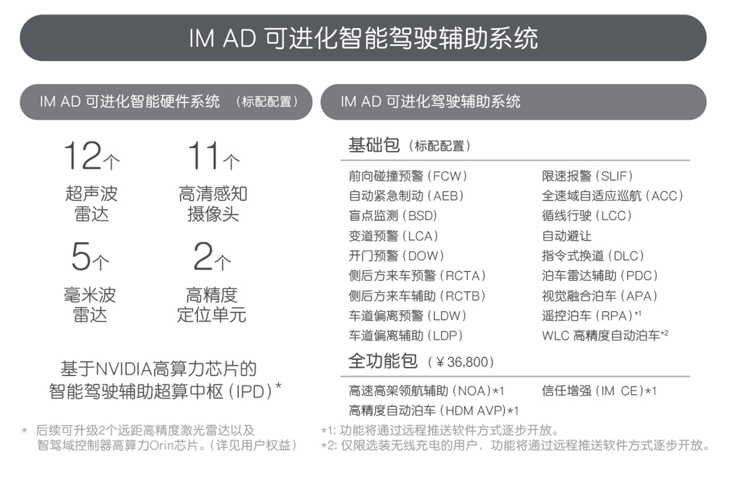 但这些都是可以“硬件 OTA”的。智己 L7 的用户可以在开放升级后,给自己的车装上速腾聚创提供的激光雷达,将辅助驾驶计算平台换成算力更强的英伟达 Orin,让车辆具备城市辅助驾驶的硬件基础;对续航有更高要求的消费者,还可以将电池升级至 120kWh。