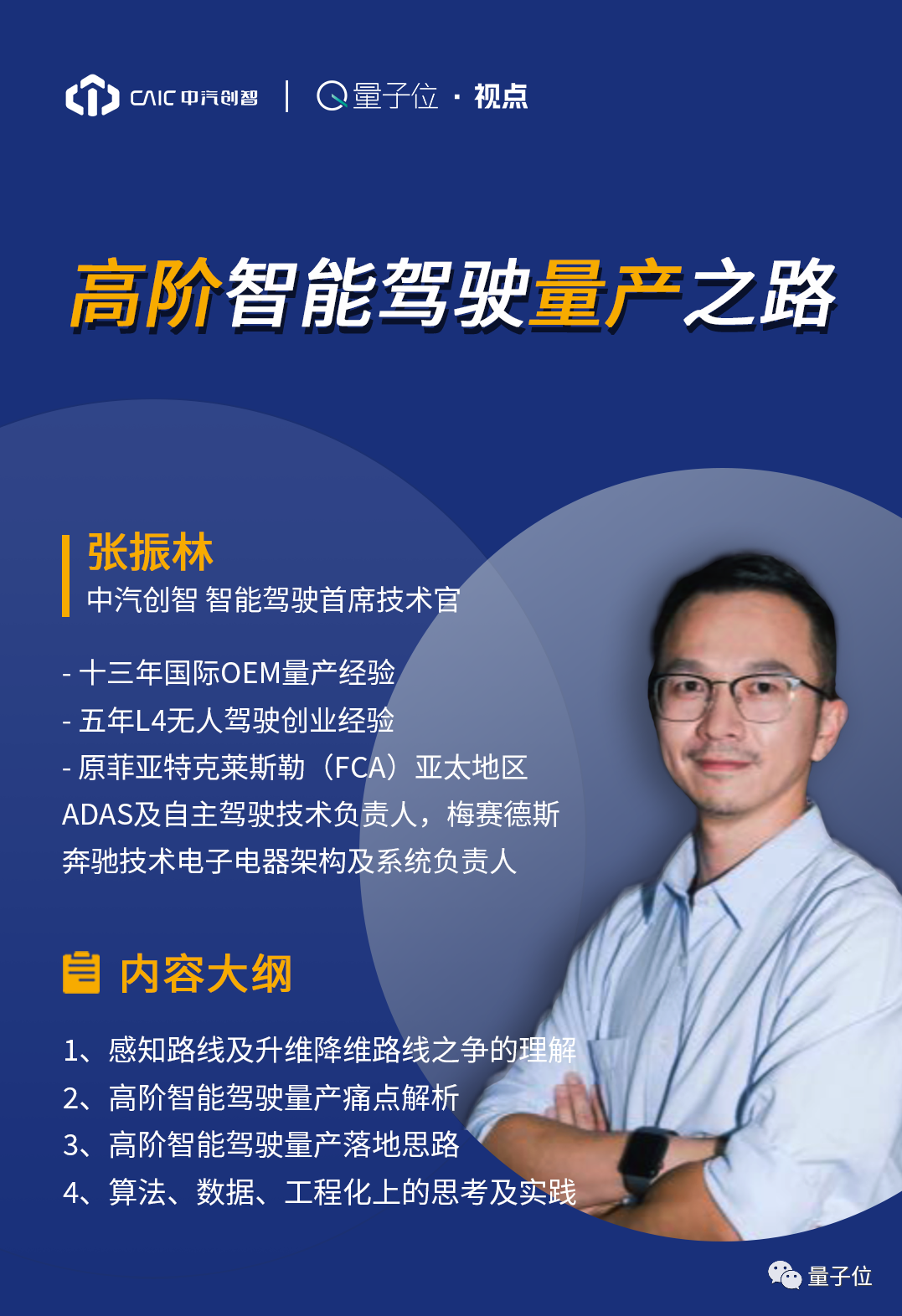 围绕高阶智能驾驶量产的路线、痛点、落地等,中汽创智智能驾驶首席技术官张振林在「量子位·视点」直播中分享了他的从业经验和观点。