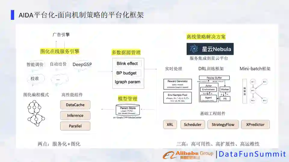 为了支撑业务的快速发展,提升策略迭代效率,设计了面向机制策略的平台化框架AIDA。其中两个创新的模块是: