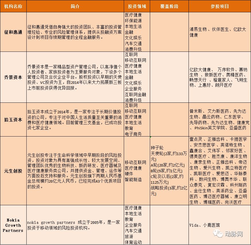 涉及医疗器械、健康机构、医疗媒体、辅助生殖、新药研发等领域。