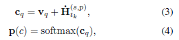 中的未出现过的实体的值设为无限小的值(如 - 10000),然后通过简单的加和,将未出现过的实体概率值降到无限小。通过一层 softmax,即可将未出现过的实体概率无限逼近与 0,得到历史出现过的所有实体的概率值 p(c):