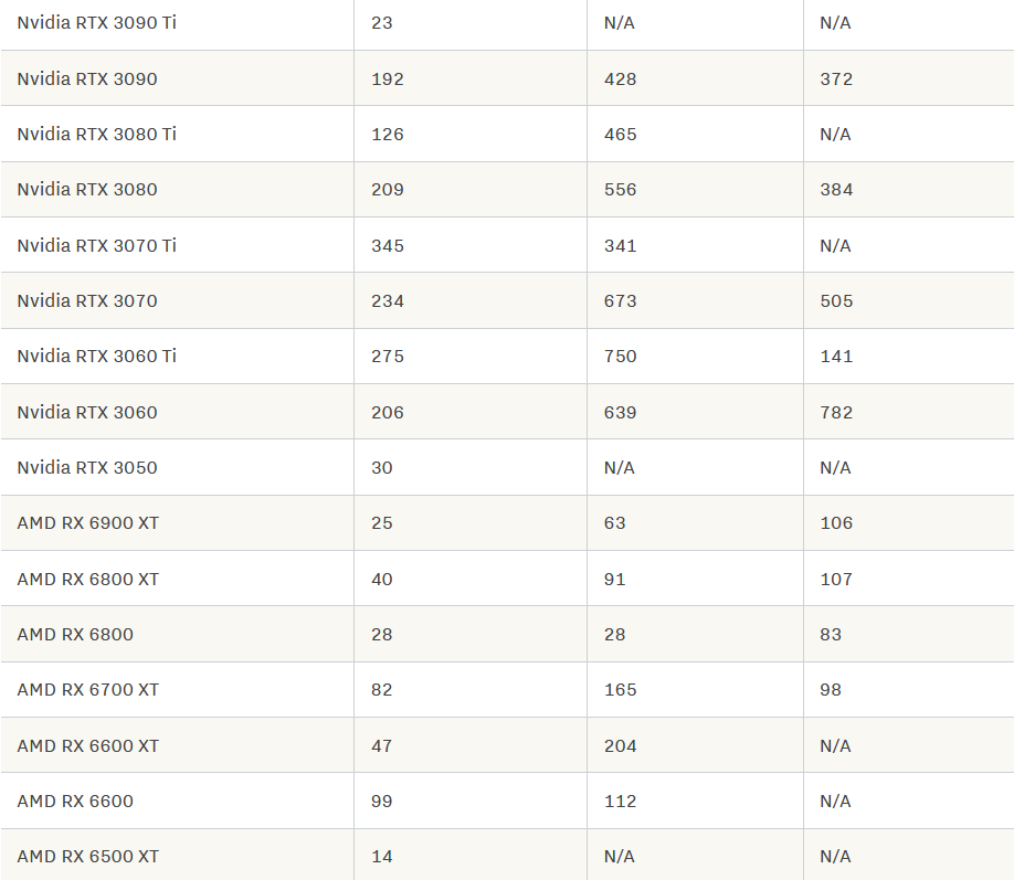 同样重要的迹象是,一些显卡在价格过高时,实际上会在零售商处滞销囤库——这听起来很正常,但消费者已经有一段时间没有看到了。