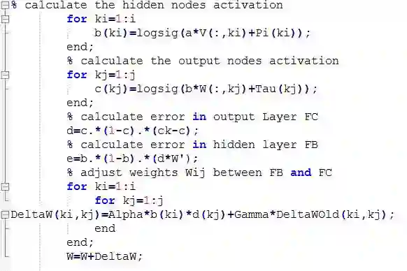 DeltaW(ki,kj)=Alpha*b(ki)*d(kj)+Gamma*DeltaWOld(ki,kj)