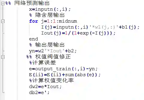 BP算法是一种有监督式的学习算法,其主要思想是:输入学习样本,使用反向传播算法对网络的权值和偏差进行反复的调整训练,使输出的向量与期望向量尽可能地接近,当网络输出层的误差平方和小于指定的误差时训练完成,保存网络的权值和偏差。