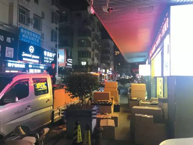 5月23日凌晨1点,出租车缓慢行驶在拥堵的安福电商城路口。车窗外人潮涌动,数十辆装载着印有品牌鞋盒的摩托车和提着黑色塑料袋的行人匆匆而过,三三两两的青年围聚在路边,等待着送货人的到来。
