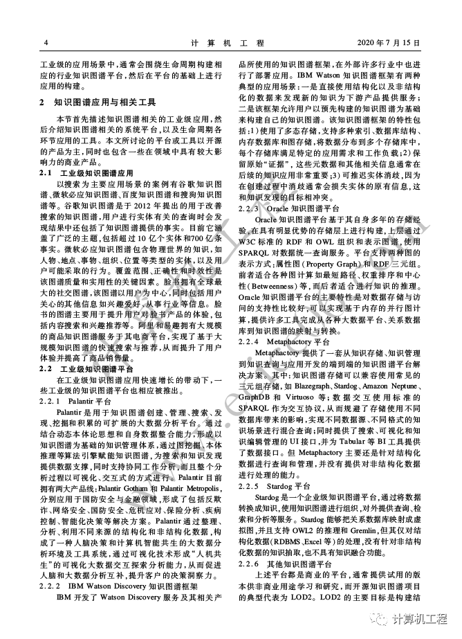 中文摘要:近年来,知识图谱及其相关技术得到快速发展,并被广泛应用于工业界各种认知智能场景中。在简述知识图谱相关研究的基础上,介绍知识图谱在工程应用中的关键技术,研究工业级知识图谱的典型应用场景与案例、具有代表性的工业级知识图谱平台以及知识图谱生命周期过程中的相关可用工具,分析企业级知识图谱平台的构建需求和面临的问题,阐述企业级知识图谱平台的构建方法及过程。针对平台化建设中遇到的问题给出相应的知识图谱中台解决方案,并对知识图谱未来的发展与挑战进行展望。