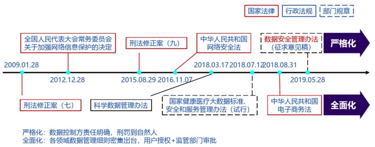 中国对数据隐私和保护也进行了非常细致的研究,从2009年到2019年有一系列动作,而且越来越严格,经过长期的讨论和民众的交互,可能在今年年底到明年年初会有一系列正式的法律出台。