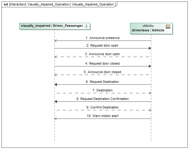 图4 SysML序列图,视力障碍乘客场景