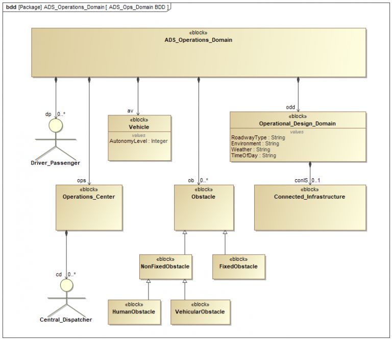 图1 ADS Operations领域的SysML块定义图