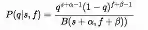 而另一部分P(q)代表与P(q|s,f)属于共轭分布【15】的先验分布,在伯努利分布中共轭先验分布是Beta 分布: