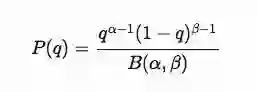 这里α,β代表胜率和失败率的大于0的参数, B是Beta分布中的正则化常量,以确保整体概率为1.