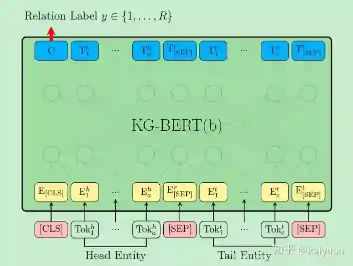 上述的KG-BERT(a)需要输入关系,对于关系分类任务不适用,于是作者又提出一种KG-BERT(b),如上图。这里只是把sigmoid的二分类改成了softmax的关系多分类。