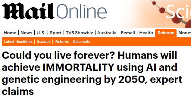 Dailymail:你可以永生吗?人工智能和基因工程,在2050年可以让你永生!