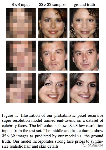 用名人脸部图像数据集训练出来的超分辨率像素递归模型所生成的高分辨率图像。