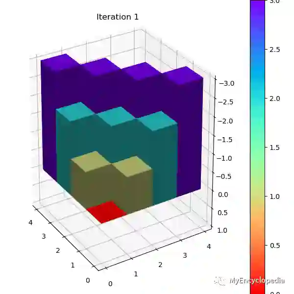 在第4.5节中提到了DP迭代方式的改进版:异步方式迭代(Asychronous Iteration)。这里的异步是指每一轮无需全部扫一遍所有状态,而是根据上一轮变化的状态决定下一轮需要最多计算的状态数,类似于Dijkstra最短路径算法中用 heap 来维护更新节点集合,减少运算量。下面我们通过异步值迭代来演示异步迭代的工作方式。