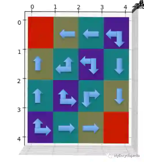 Grid World 的最佳策略如下:尽可能快的走出去